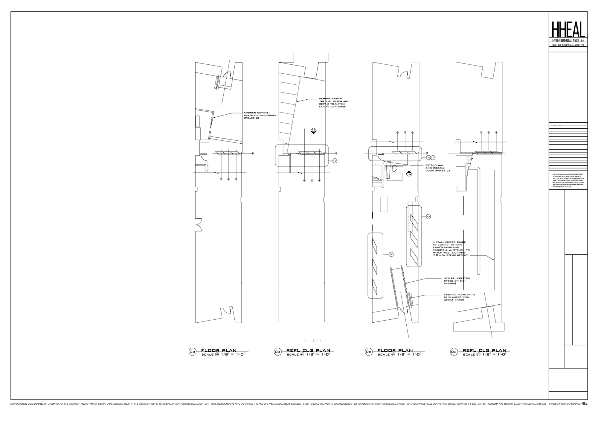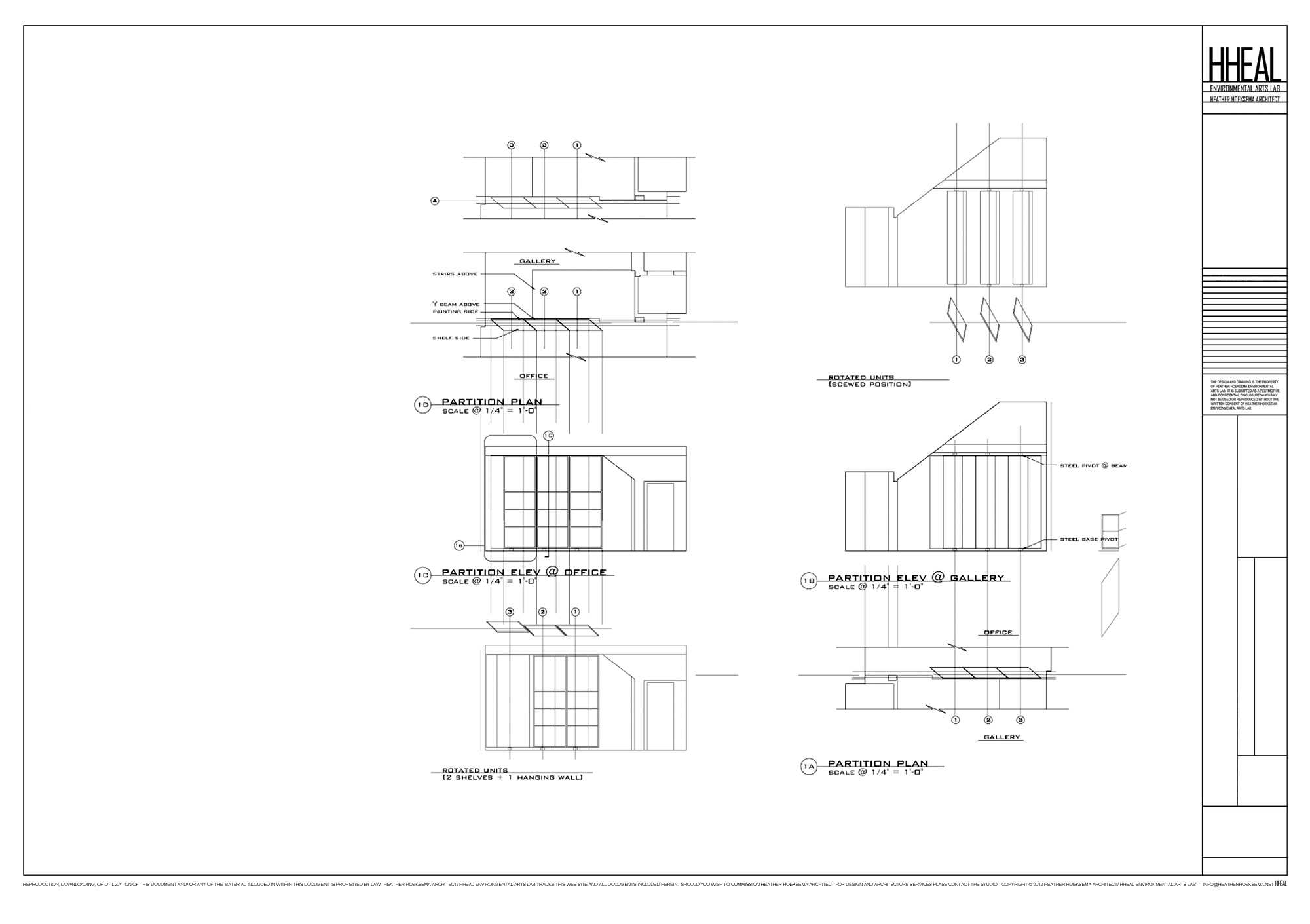 This fine art gallery redesign was inspired by an upcoming show with an aerial scenery painter. The main design feature is a rotating projection wall that accommodates scultpture on one side and paintings on the other, engineered and fabricated by Hoeksema. The wall bisects the atmosphere, physically and energetically, by separating the office area in the back from the gallery space in the front. Additional architectural features included new wall colors, lighting, and a grass field wall diffusing the natural light entering from the glass block clerestory.